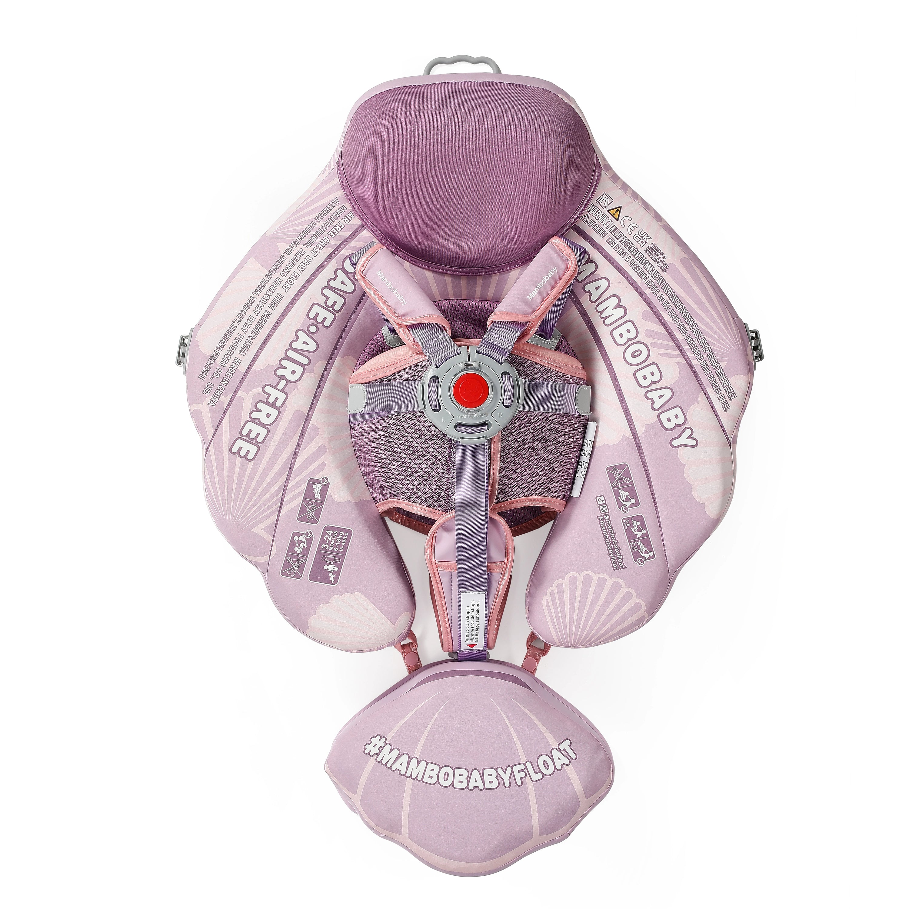 Mambobaby Yüzme Simidi - Purple Seashell, Emniyetli, Gölgelikli ve Ayak Destekli