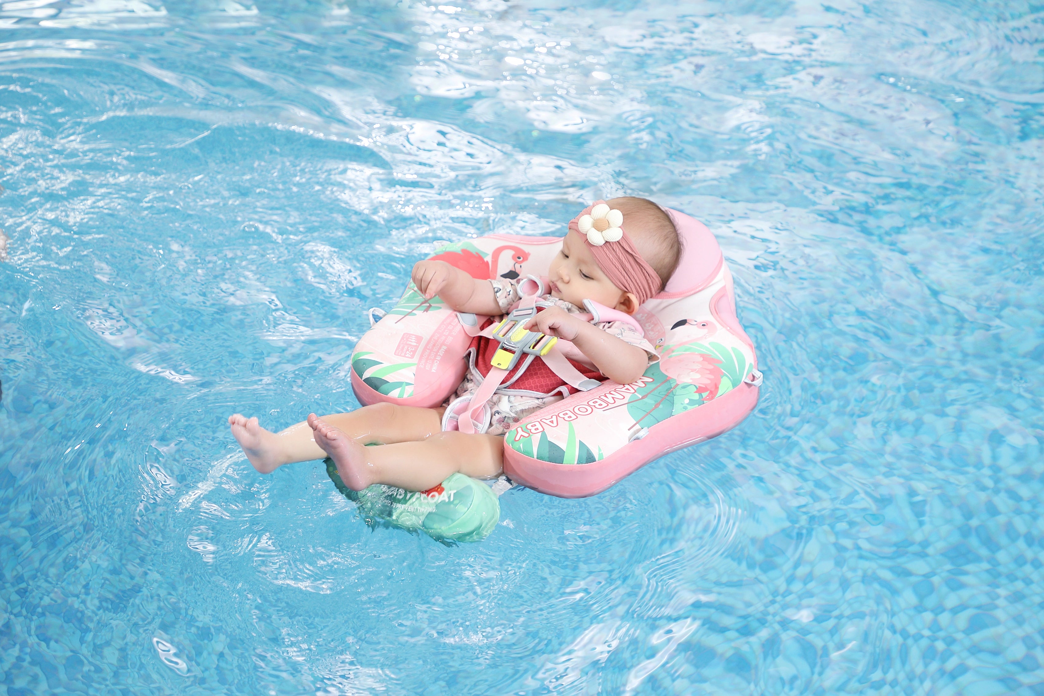 Mambobaby Yüzme Simidi - Pembe Flamingo, Emniyetli, Gölgelikli ve Ayak Destekli
