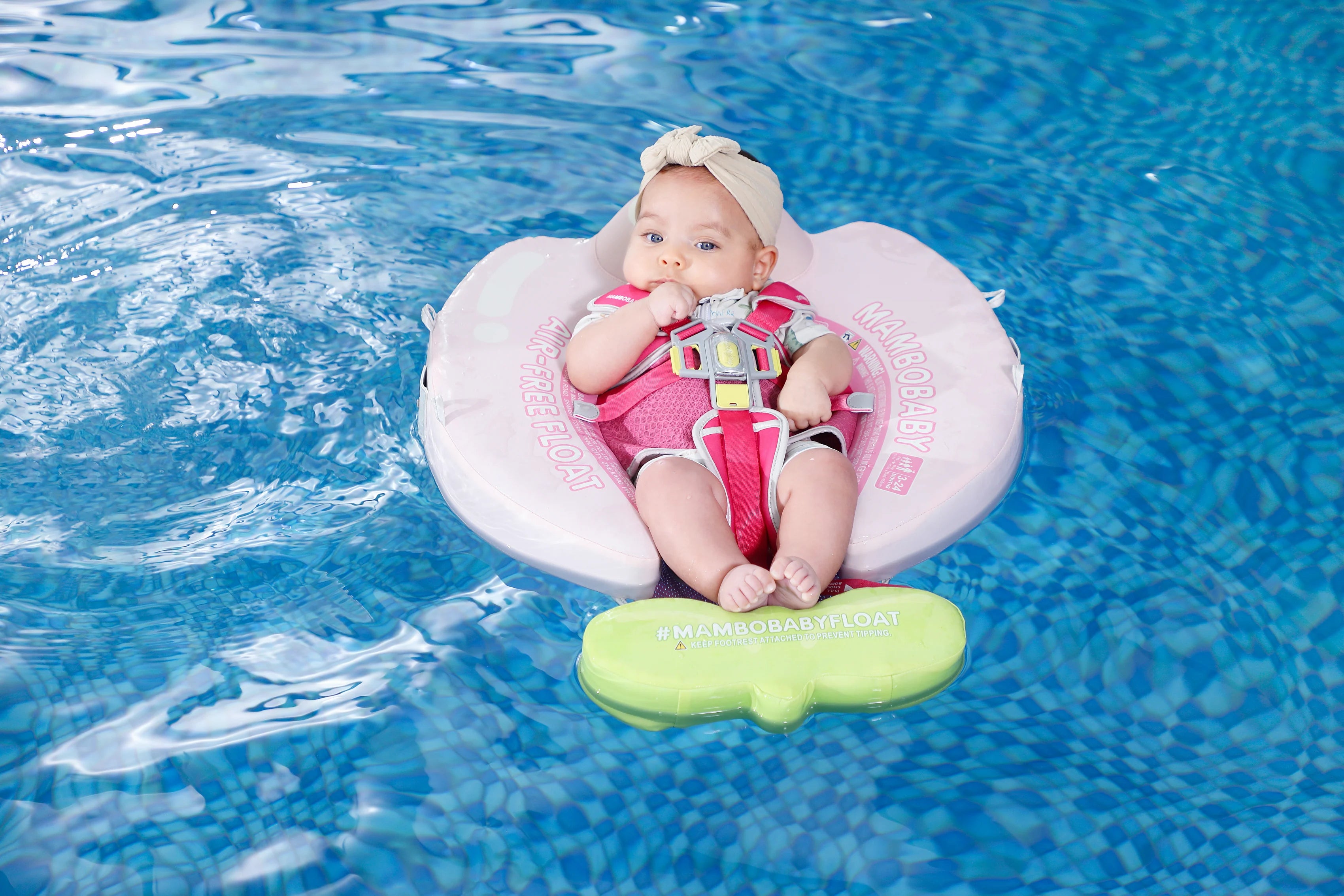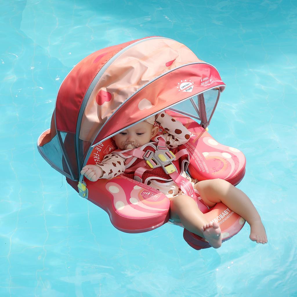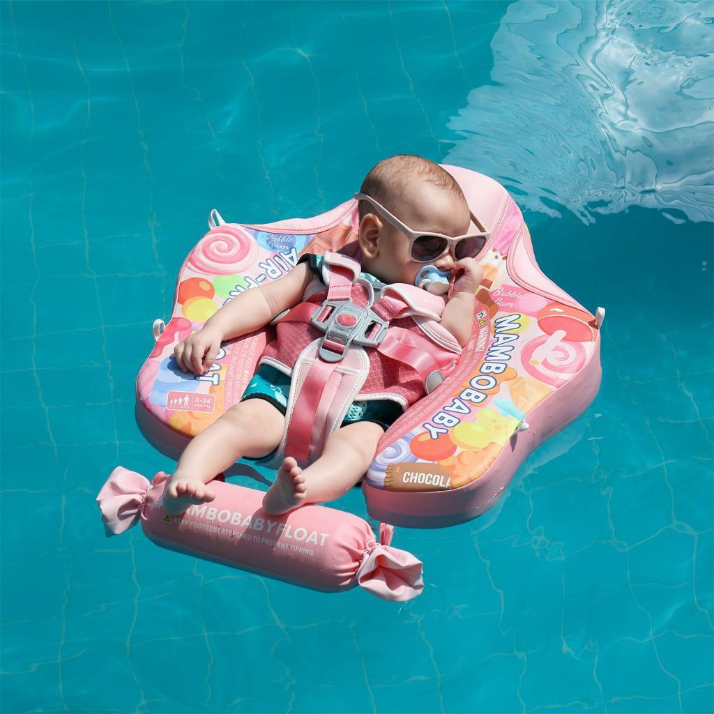 Mambobaby Yüzme Simidi - Pink Candy, Emniyetli, Gölgelikli ve Ayak Destekli