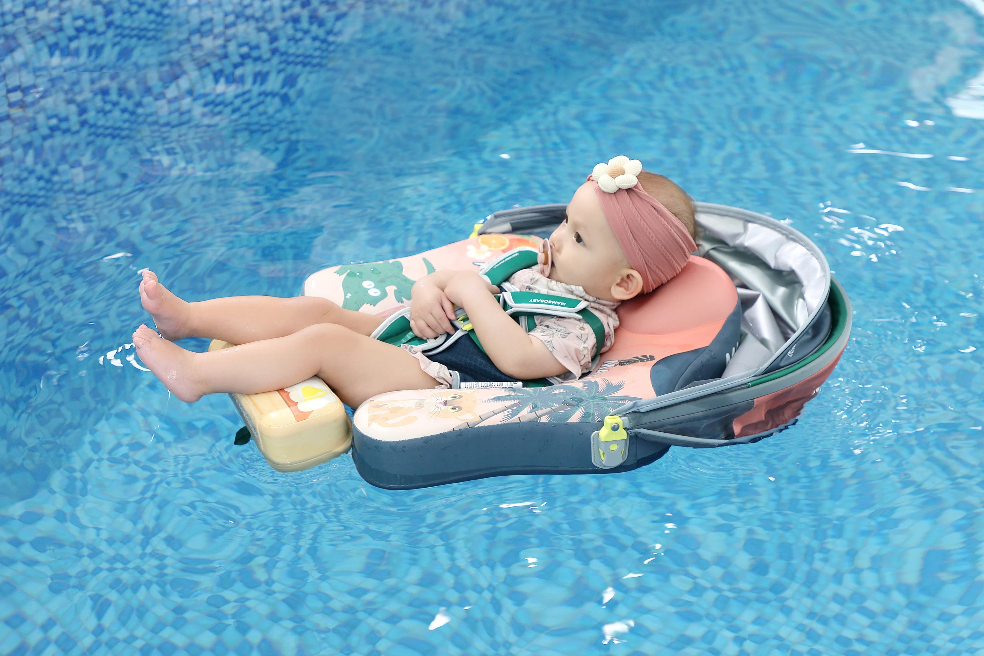 Mambobaby Yüzme Simidi - Tropical Florida, Emniyetli, Gölgelikli ve Ayak Destekli