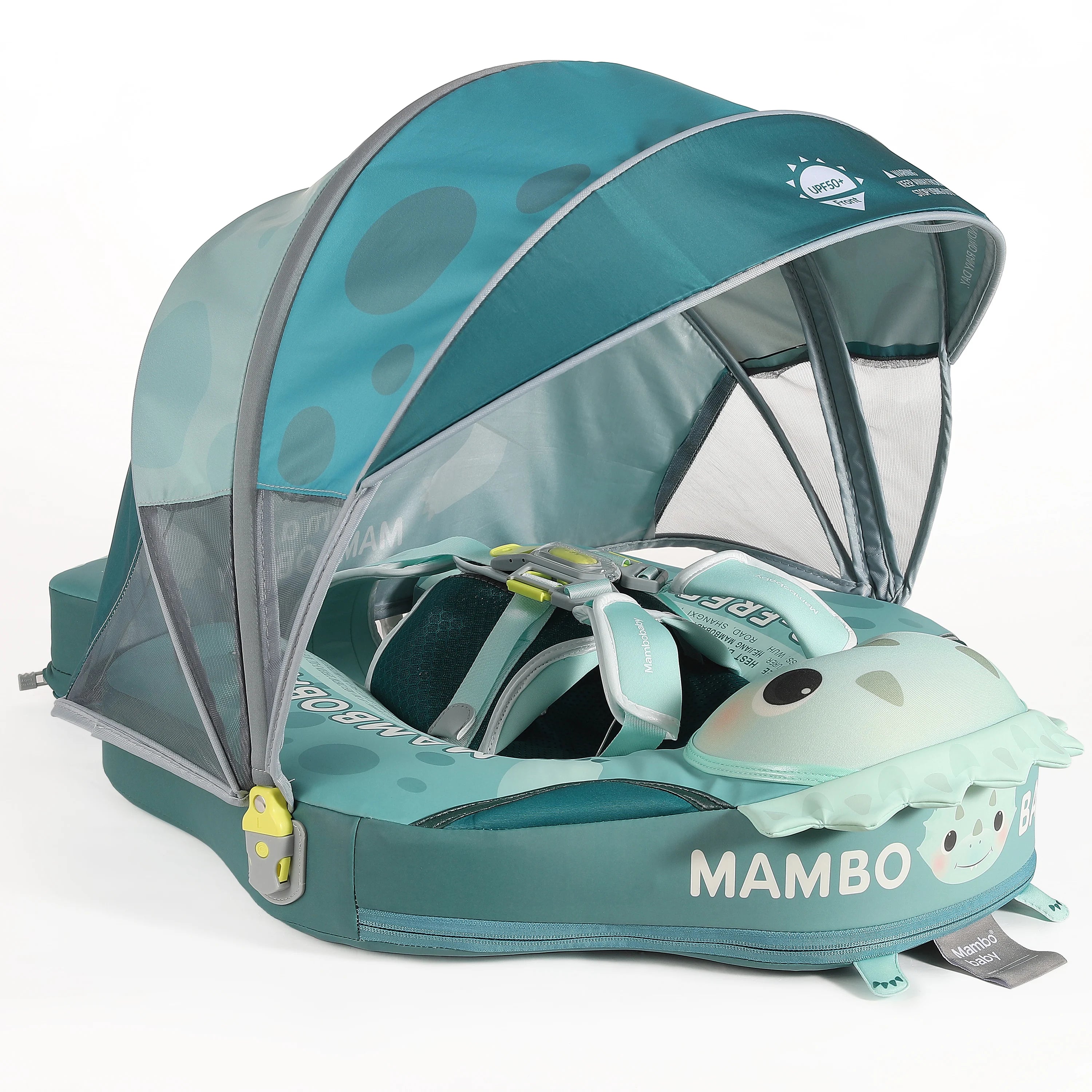 Mambobaby Yüzme Simidi - Dino Hatch, Emniyetli, Gölgelikli ve Ayak Destekli