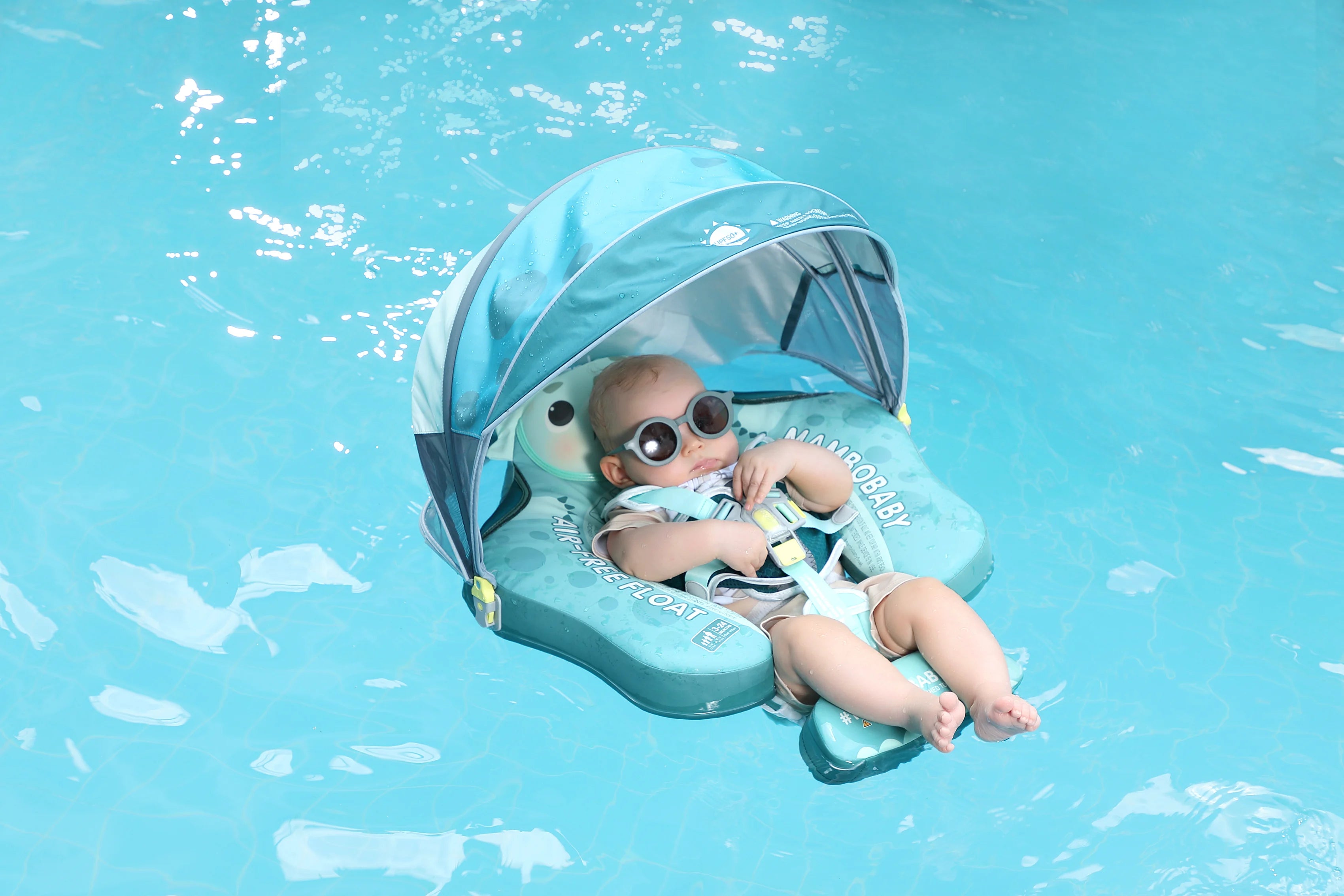 Mambobaby Yüzme Simidi - Sunny Cali, Emniyetli, Gölgelikli ve Ayak Destekli