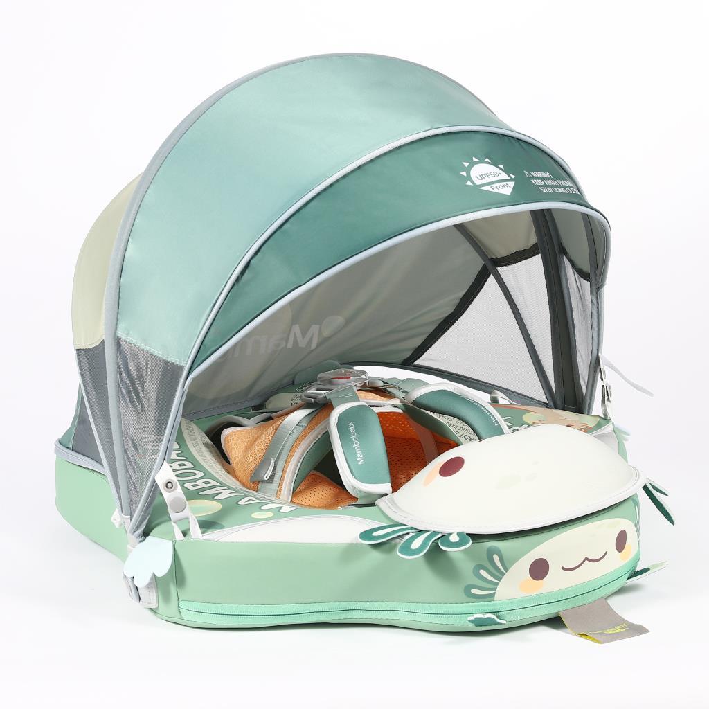 Mambobaby Yüzme Simidi - Green Seashell, Emniyetli, Gölgelikli ve Ayak Destekli