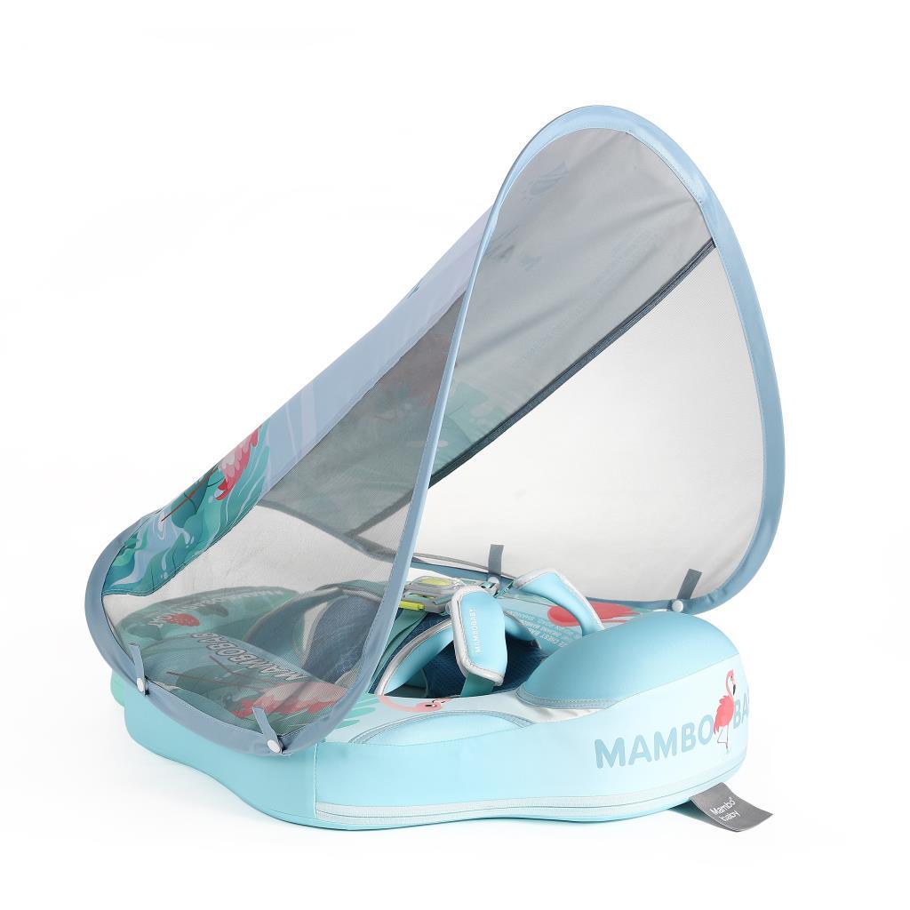 Mambobaby Yüzme Simidi - Mavi Flamingo, Emniyetli, Gölgelikli ve Ayak Destekli