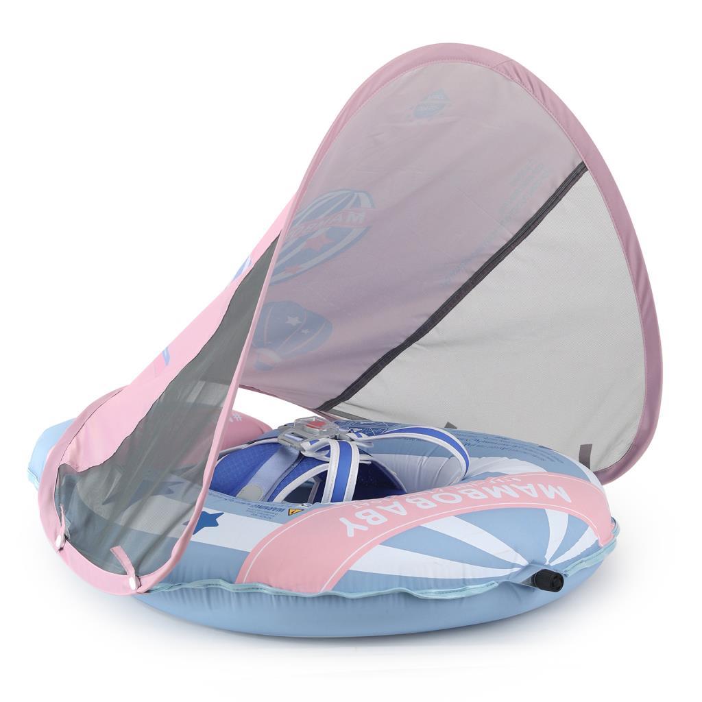 Mambobaby Hot Air Balloon Yüzme Simidi - Pembe, Emniyetli, Gölgelikli ve Ayak Destekli