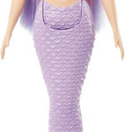 Barbie denizkızı bebeğinin muhteşem bir deniz kabuğu korsajı ve ombre yüzgeçli lavanta kuyruğu var!