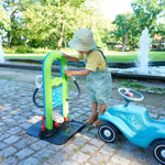 BIG’den şimdi de gerçekçi Bobby Araç Servis İstasyonu. Hayal gücünüzü genişletmenin tam zamanı, Bobby Car yarışçıları için vazgeçilmez bir oyuncak istasyon. Yenilikçi servis istasyonu gerçek akaryakıt pompaları ve şarj istasyonlarından esinlenerek tasarlandı. Ortada bulunan UV ışınlarına dayanıklı tabelanın bir yüzünde akaryakıt fiyatları diğer yüzünde ise servis istasyonu bilgileri yer alması oyuncak akaryakıt istasyonunun daha da otantik görünmesini sağlıyor. Pompanın mavi tarafında yakıt ikmali için bir nozul bulunurken, yeşil tarafta elektrikli otomobiller için bir şarj istasyonunu temsil ediyor ve üzerinde şarj fişi bulunuyor. 280 mm'lik kablo uzunluğu oyun esnasında kolay kullanım ve esneklik sağlar. Oyun sırasında çocuklar BÜYÜK Bobby Arabalarının lastik basıncını da birlikte verilen hava basınç test cihazıyla kontrol edebilirler.