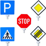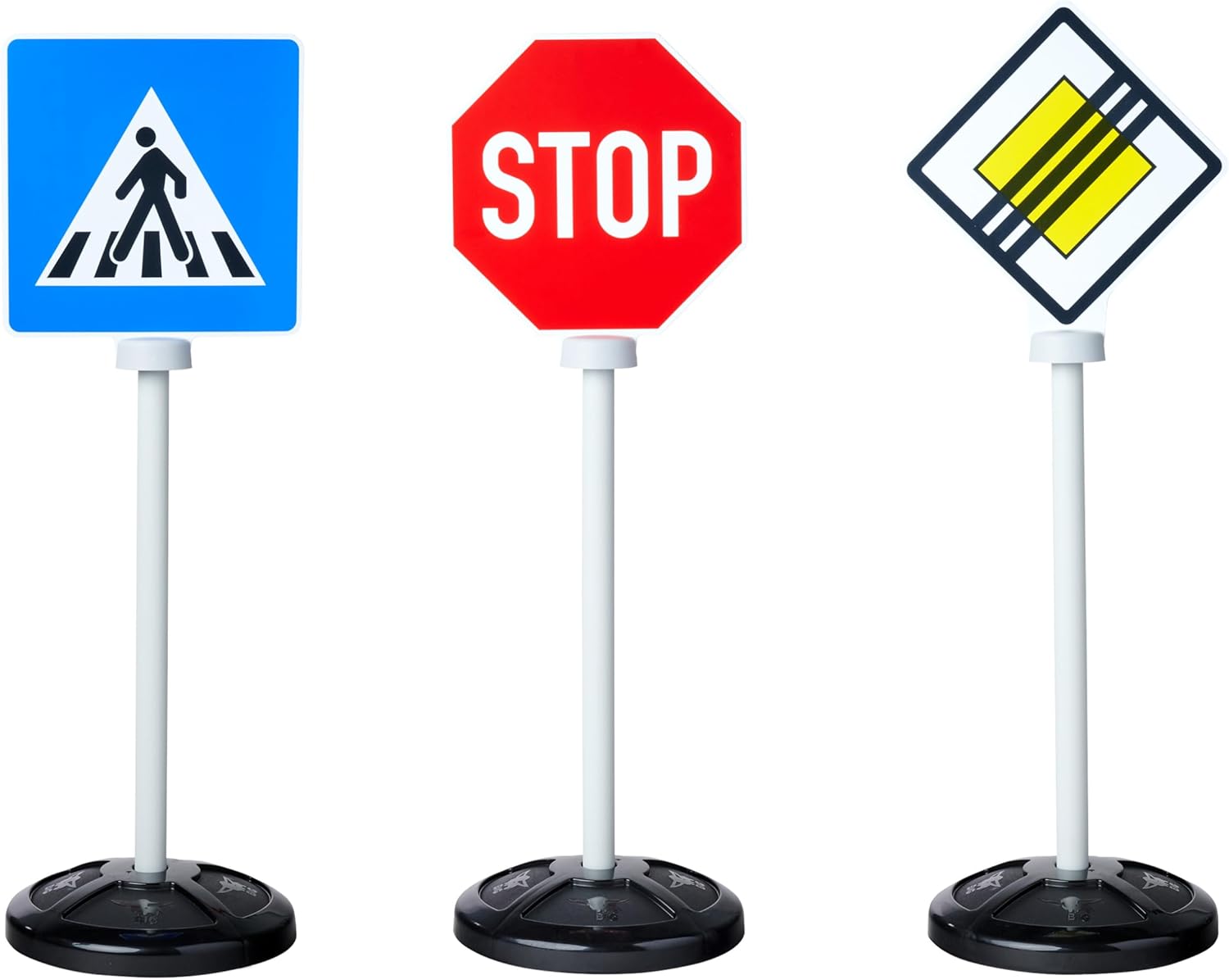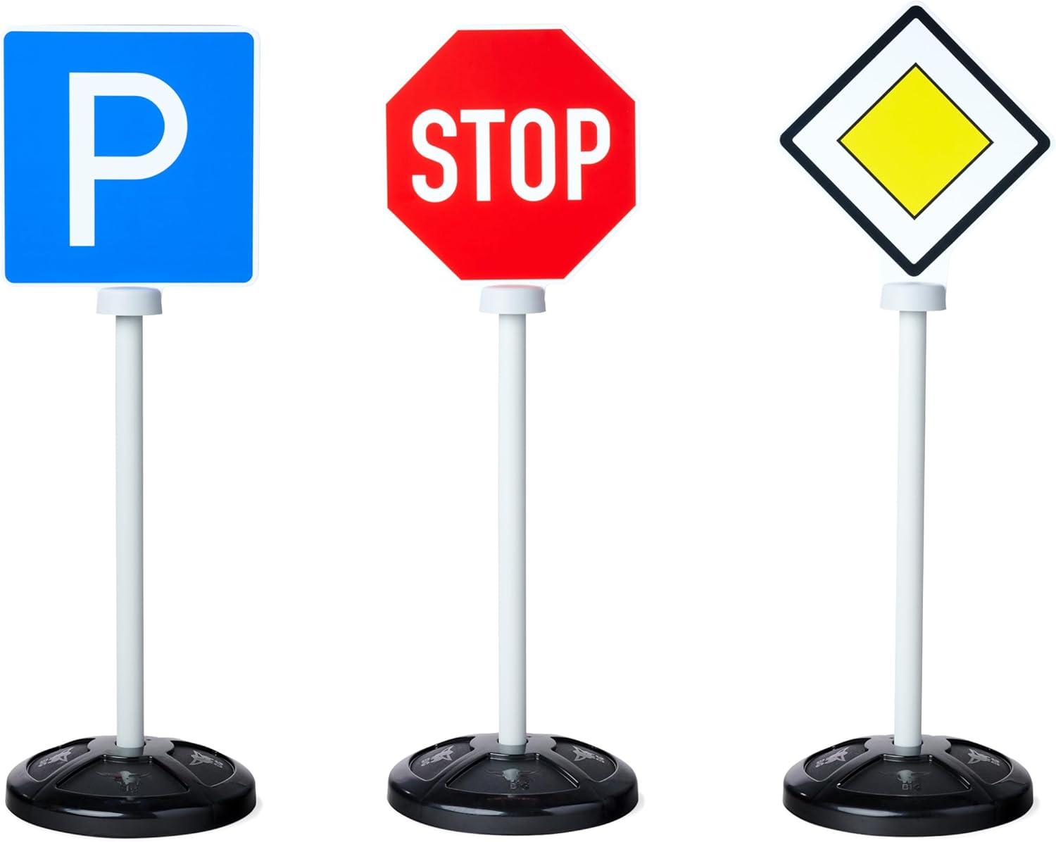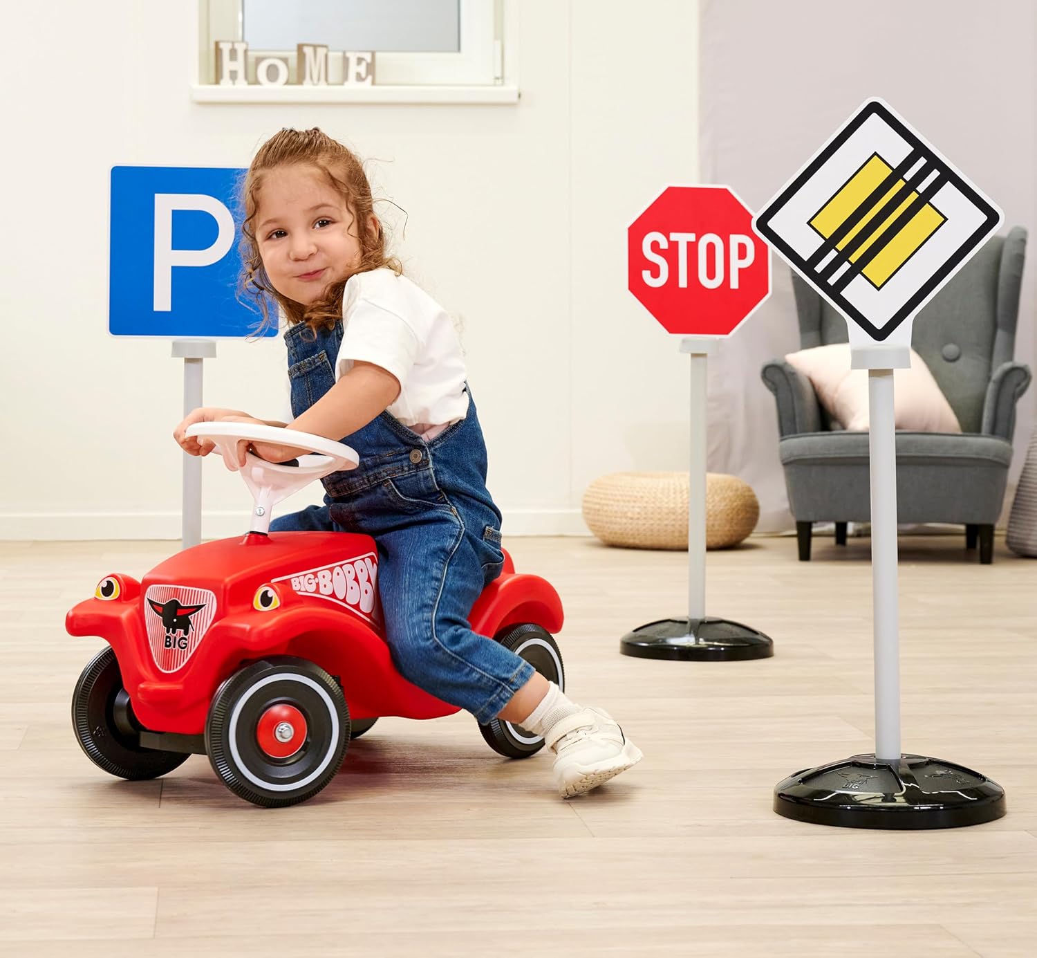 BIG trafik işaretlerinin montajı kolaydır ve sağlam bir tutuş sağlayan geniş bir tabana monte edilmiştir. Toplam 69 cm yüksekliğiyle işaretler açıkça görülebilir ve çocukların ilgisini çeker. Trafik işaretleriyle oynayarak önemli sembolleri eğlenceli bir şekilde öğrenirler ve trafikte doğru davranmayı öğrenirler.