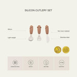 İçerik: Silikon saplı set, 304 paslanmaz çelikten üretilmiş bir kaşık, çatal ve bıçak içerir.