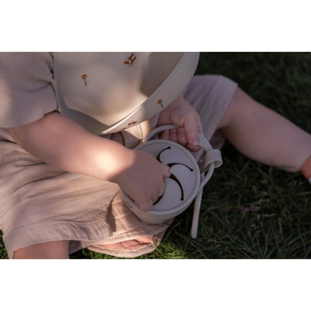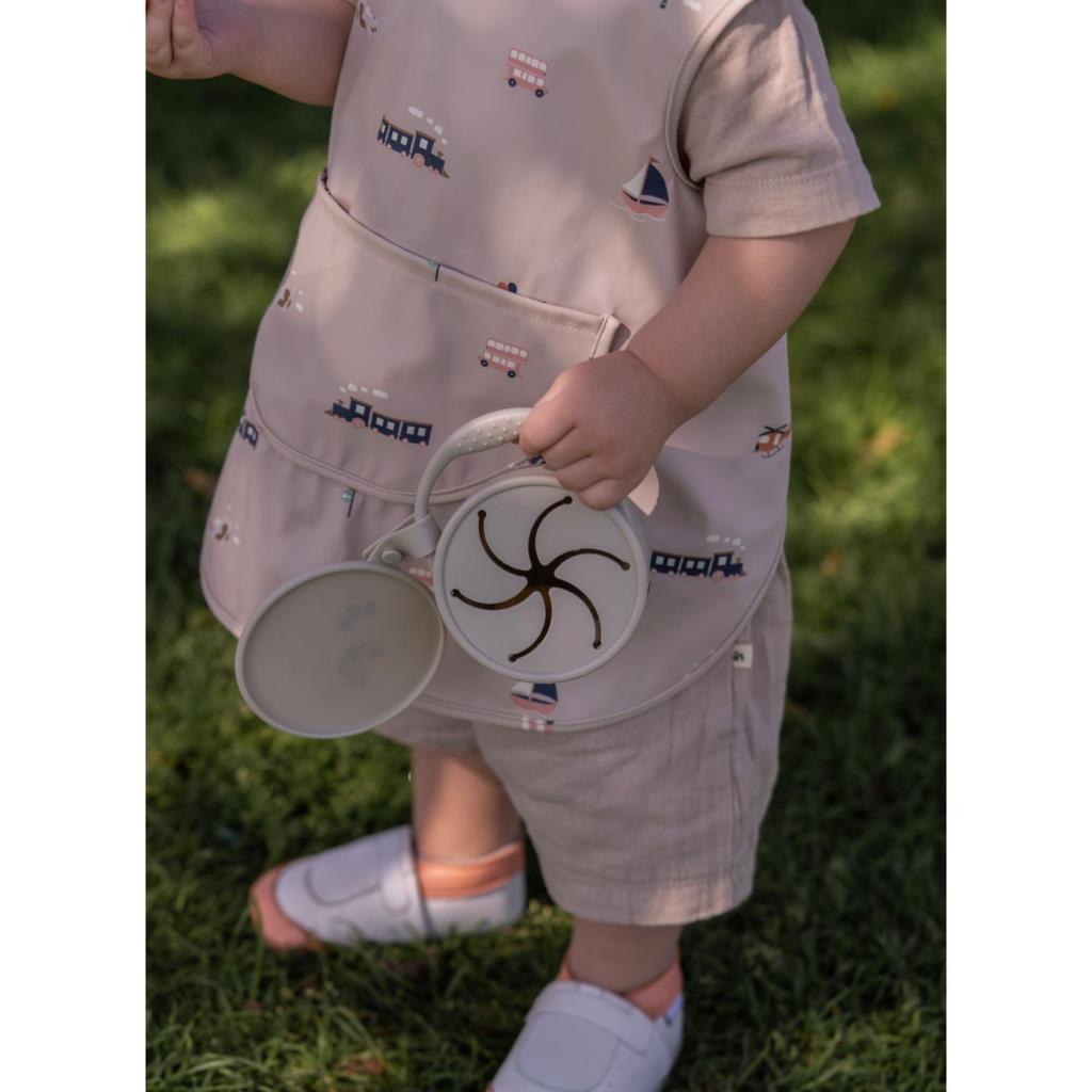 Dökülmez atıştırmalık bardağı, özel yaprak (petal) gibi açılan tasarımı sayesinde dökülmeleri önlerken, çocukların kendi kendine beslenme becerilerini destekler.