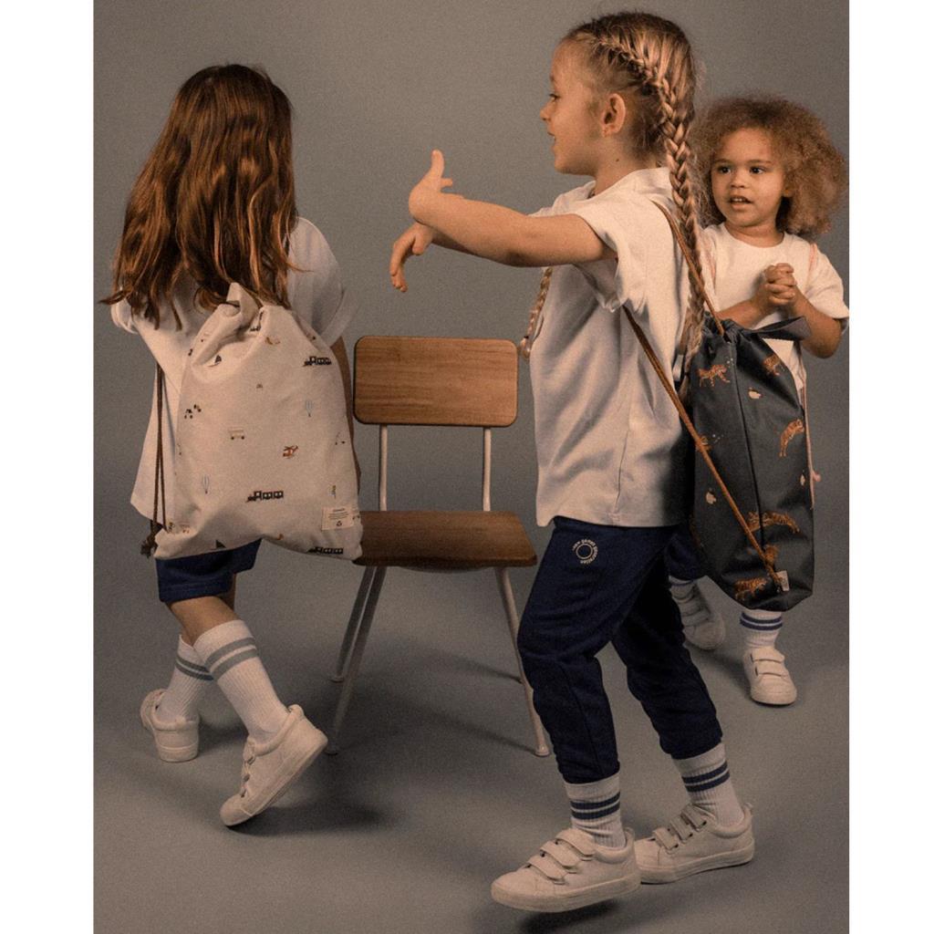 Su geçirmez ve hafif büzgülü çocuk sırt çantası, minik maceralar için ideal bir tamamlayıcıdır.
