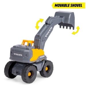 Çocuklar için Volvo Tough Ekskavatör, serbest tekerlekli ve ön kepçeli, hem evde hem de kumda oynamaya uygun.