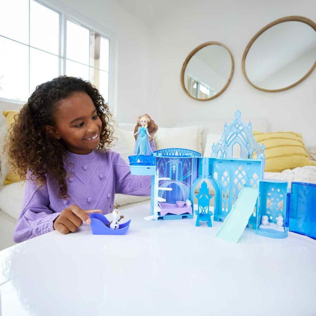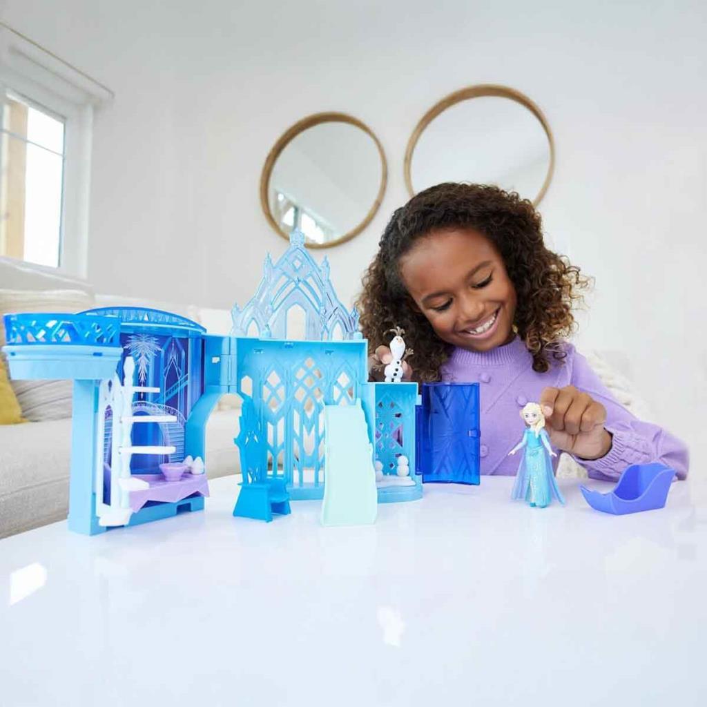 Set açıldığına, çocukların filmde gördüğü mekanları yansıtan çeşitli oyun alanlarına sahip bir bebek evine dönüşür. Katlanabilir kaydırak ve kızak, balkona çıkan buz görünümlü bir merdiven ve Olaf'ın hazineleri için gizli bir oda bulunur. Ayrıca çıkarılabilir yumuşak etekli klasik mavi giysilerini giyen minik Elsa, kol, bacak, boyun bölgelerinden bükülebiliyor. Disney'in sevilen animasyon filmi Karlar Ülkesi'nden ilham alan Elsa'nın Buzdan Sarayı oyun seti ile çocuklar, en sevdikleri sahneleri unutulmaz mekanlarda tekrar canlandırabilir. Hayranlar tüm krallığı inşa etmek için tüm Disney Karlar Ülkesi birleştirilebilir oyun setlerini koleksiyonlarına ekleyebilir!