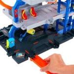Çocuklar arabalarını bu çok katlı setin giriş katındaki araba yıkama istasyonuna sürebilir. İstasyonda hareketli köpük silindir ve branda bulunur. Ardından arabalarını fırlatıcıya yerleştirerek çift çembere gönderebilir ve yönlendiricileri kullanarak istedikleri kata gidebilirler. Çocukların etkinleştirebileceği asansörü veya araba taşıma helikopterini kullanarak araçları dilediğiniz kata park edin. Kolayca birleştirilebilen pist bağlantı parçalarını kullanarak pisti uzatabilirsiniz. 1 Hot Wheels metal oyuncak araba ve 1 oyuncak helikopter dahildir. Diğer araçlar ve pistler ayrı olarak satılır. Renkler ve süslemeler çeşitlilik gösterebilir.