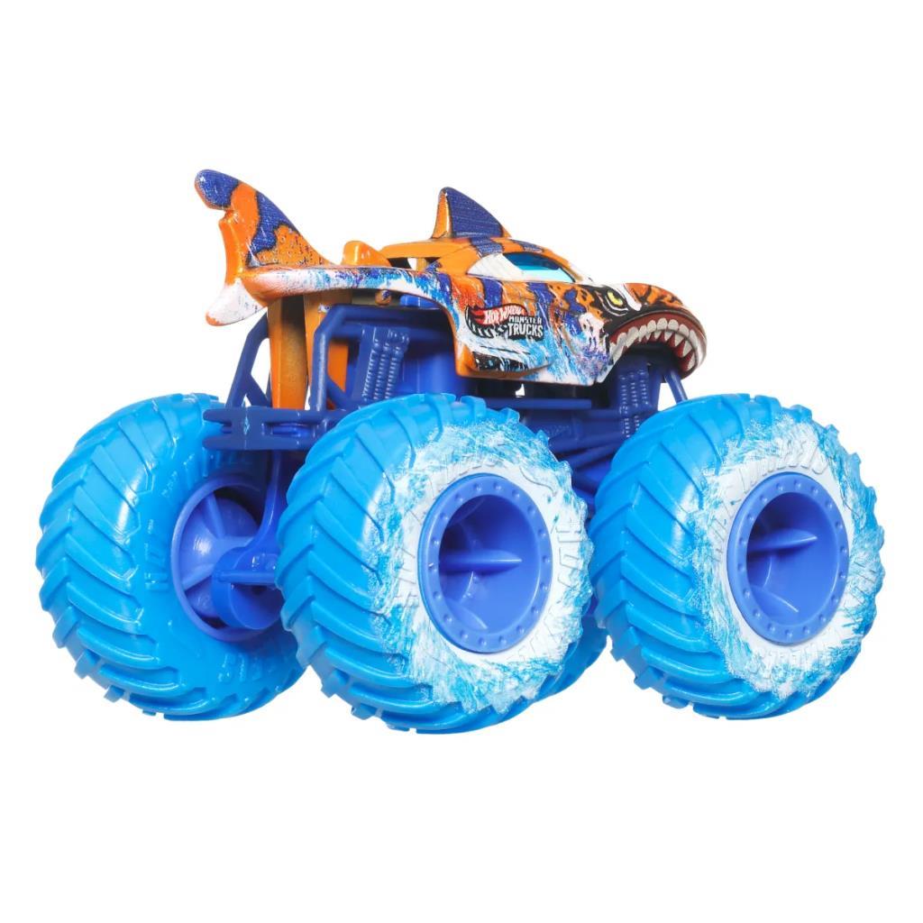 Hot Wheels Monster Trucks 1:64 ölçekli döküm araçlar, destansı çarpışmalar ve parçalamalar için hazır. Her metal oyuncak kamyon, harika tasarımlara ve dev lastiklere sahip ve ezilebilir bir araba içeriyor.