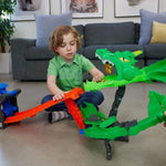 Kamyonlardan biri yönlendiriciden geçemezken şanslı olan diğeri yarışıp kendini kurtarabilir ve ejderhayı alt edebilir. Macerayı devam ettirmek için Hot Wheels Hızla Birleştirilen pisti ekleyin. (Diğer pistler ayrı olarak satılır.)