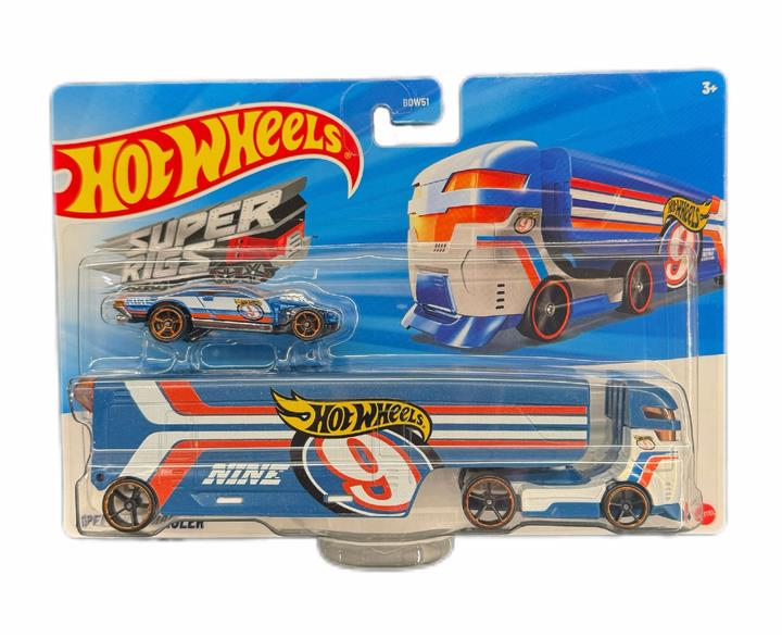 Hot Wheels Super Rigs BDW51-DKF85 kamyonu, gerçek kamyona birebir benziyor. Havalı tasarımı ve setteki Hot Wheels temel aracı, her türlü mesafeyi rahatlıkla kat edebileceklerini gösteriyor! Kamyonun kabini çıkarılabilir. 1:64 ölçekli plastikten yapılmıştır.