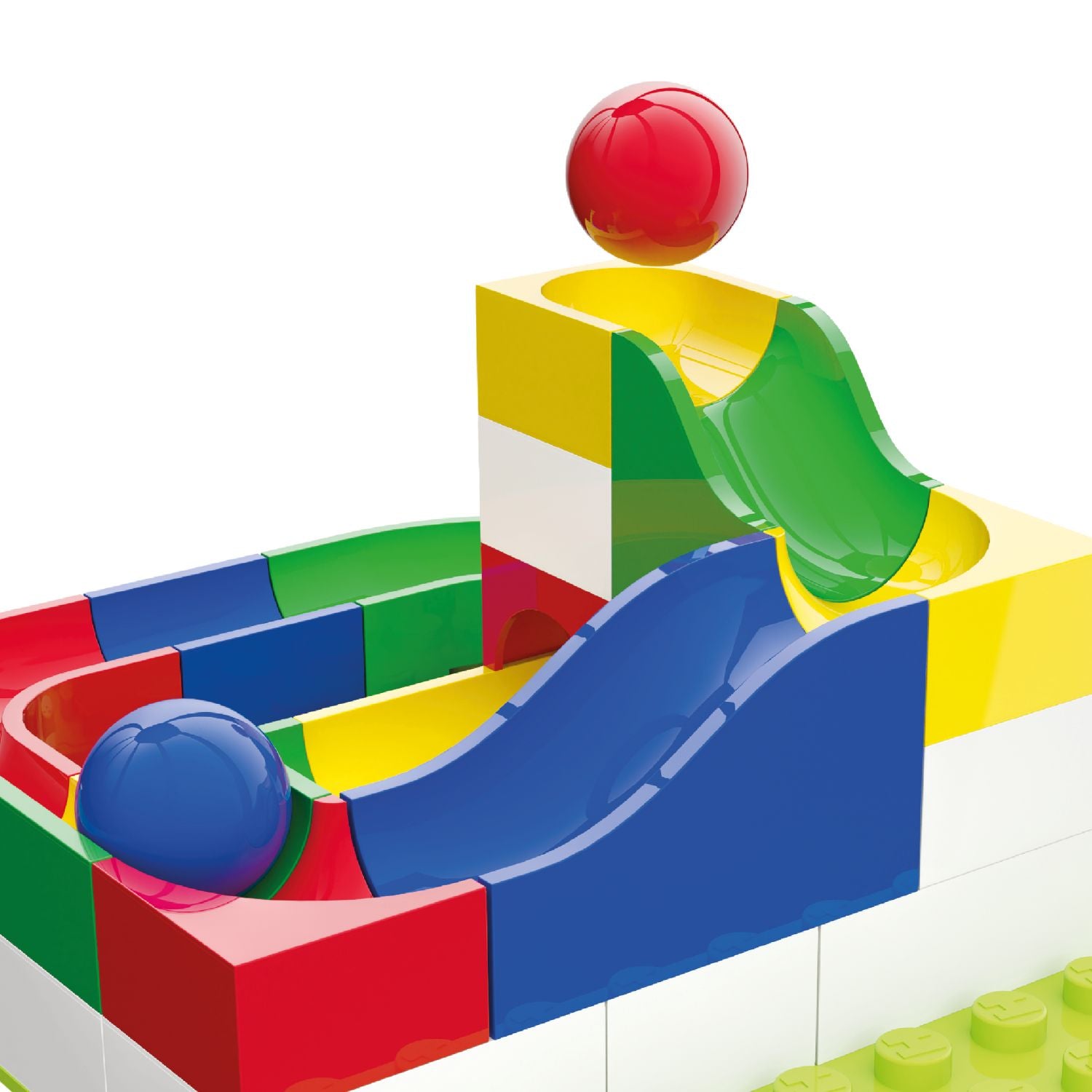 İçerik: 45 parça (21 parça blok parkur, 21 blok yapım parçası, 1 zemin plakası, 2 misket) + Talimat kitapçığı