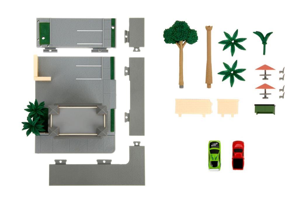 Bu diorama içinde açılır kapılı bir garaj, bir açık alan ve cafe masası gibi aksesuarların yanı sıra 2 gerçek film efsanesi olan Die-Cast ( Metal ) malzemeden yapılmış nano arabalar bulunmaktadır.