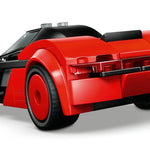 AYNI GERÇEĞİ GİBİ – Siyah-kırmızı küçük spor arabanın arka kapısını kaldırarak oyuncak pil takımına erişin, sürücü minifigürünü direksiyonun başına geçirin ve gazı kökleyerek saatlerce eğlenin