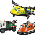 3 İKONİK ARAÇ – Model yapım seti, LEGO® City ambulans uçağı, sahil güvenlik hovercraftı ve servis kamyonunun yanı sıra, sağlık, sahil güvenlik ve dağ kurtarma görevlilerinin minifigürlerini içerir