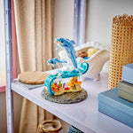 • Oyun ve sergileme aksesuarları; yunuslar, mercan üzerinde yükselen dalgaya biner, denizatı deniz yosunu ve duruşu ayarlanabilir istiridye içeren bir stant üzerindedir ve yengecin yanında denizanası ve deniz bitkileri bulunur.