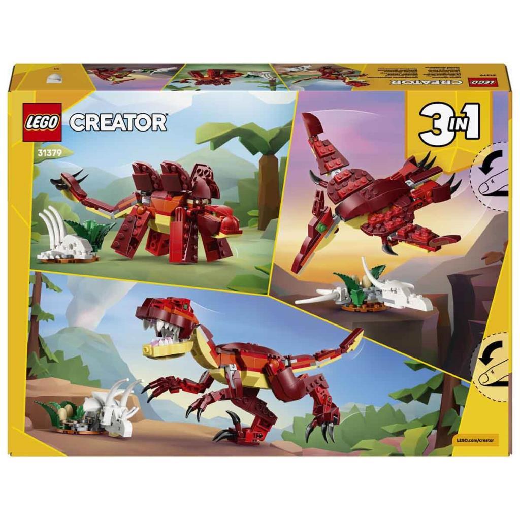 • 3’ü 1 arada oyuncak dinozor! LEGO Creator 3’ü 1 arada vahşi dinozor (31379) yapım setiyle 8 yaş ve üzeri erkek ve kız çocuklar yaratıcılıklarını göstererek aynı yapım parçalarıyla 3 farklı dinozor oyuncağı inşa edip dönüştürebilir.