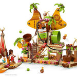 • Moana gemisi yapım seti; 3 bölümü, kayma halatı ve saklama alanı olan daha küçük, 2 gövdeli bir kanosu olan büyük bir geminin yanı sıra tavuk Heihei, Moana, Maui, Kotu ve 5 LEGO Disney karakteri içerir.
