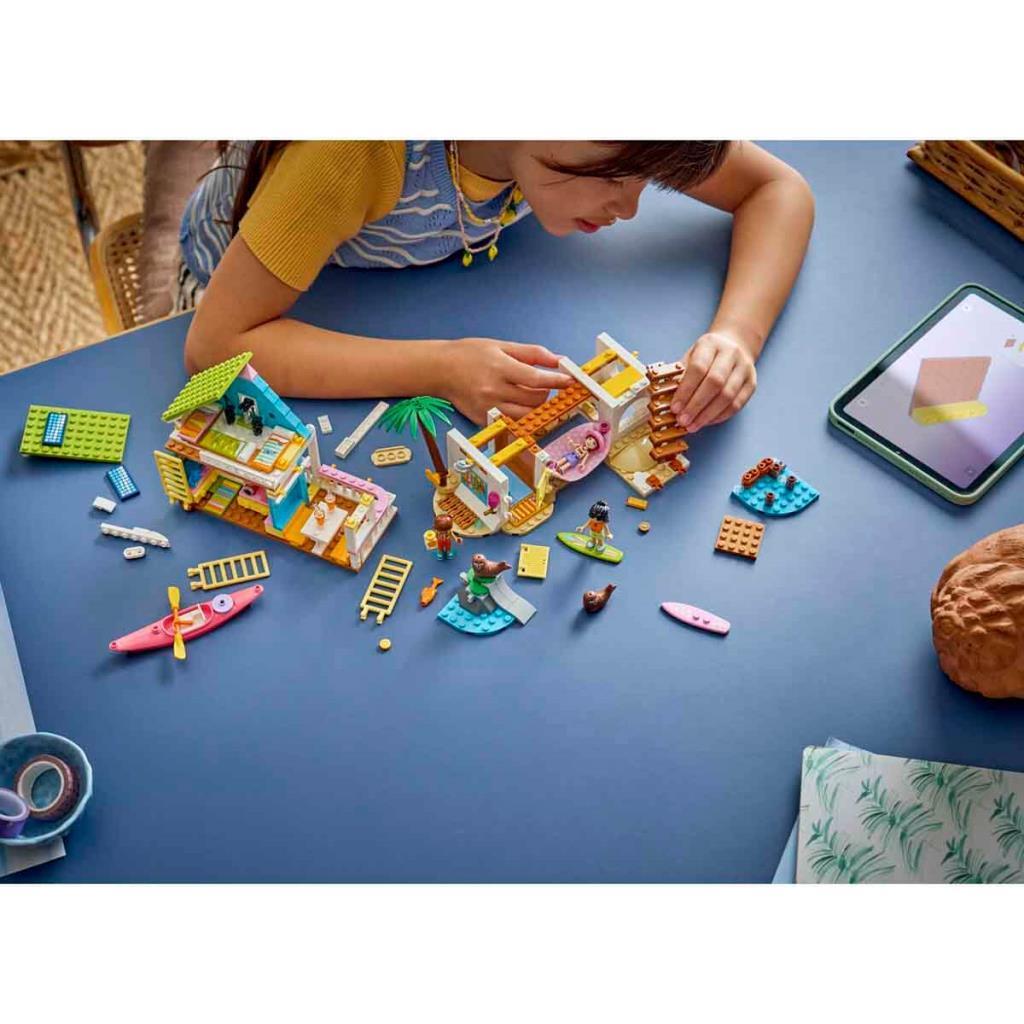 Bu ayrıntılı set, 3 mini bebek ve 2 fok ile sınırsız oyun imkanı sunuyor. Sörf tahtası, kano, hamak, can yeleği, telsizler, dürbün, güneş kremi, kamera ve atıştırmalıklar gibi birçok eğlenceli aksesuarlar vardır. Bu set, oyuncaklarla oynarken hayal gücünü kullanmayı seven kız ve erkek çocuklar için harika bir doğum günü hediyesidir. Çocuklar, LEGO Builder uygulamasının kolay ve sezgisel yapım macerasıyla 3 boyutlu yapım talimatlarını kullanarak setleri yakınlaştırıp döndürebilir ve setleri kaydederek ilerlemelerini takip edebilir. Sette 400 parça bulunur.