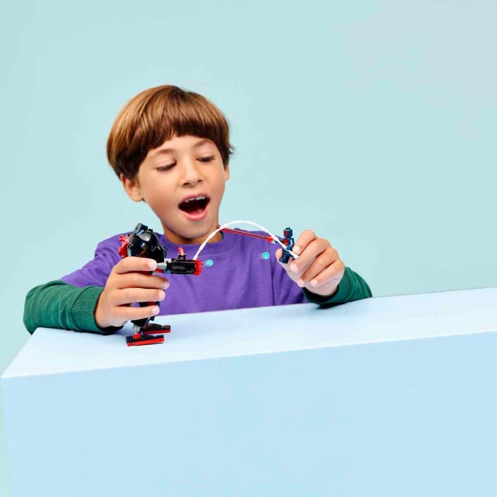 • 2 LEGO Marvel mini figürü; Genç süper kahramanlar için aksiyon dolu bu yapım setinde alternatif earth-928 evreninden Miles morales ve Spider-Man 2099 bulunur.