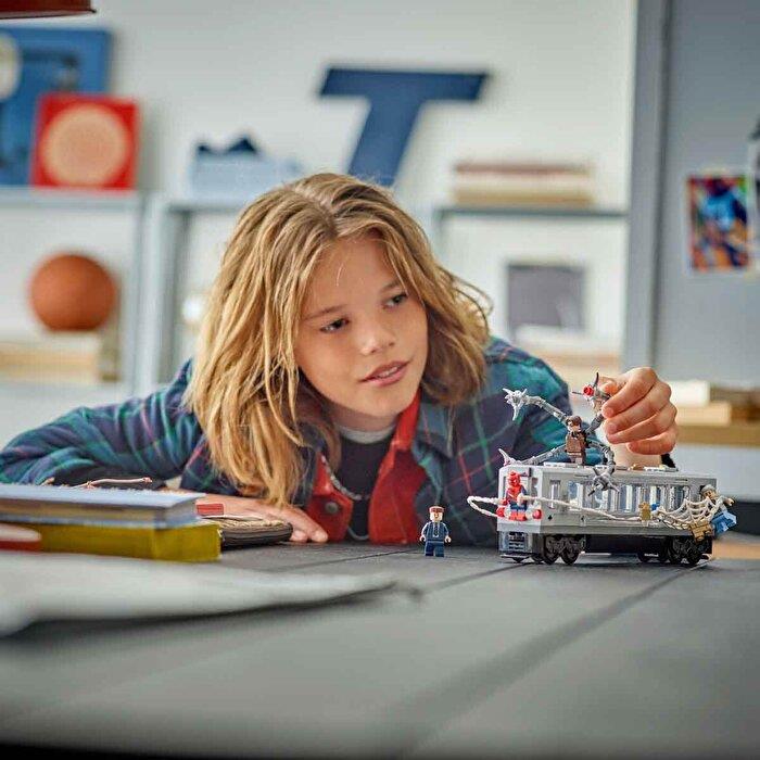 Bu Süper Kahraman metro treni yapım seti, Marvel Studios Örümcek Adam 2 filminin unutulmaz sahnelerinden birine dayanmaktadır. 4 minifigürle birlikte gelir: J. Jonah Jameson, May Hala, Örümcek Adam ve Doktor Oktopus... Örümcek Adam mini figürünün maskeli ve maskesiz başı değiştirilebilir ve trene takılabilen büyük bir ağı bulunur.