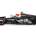 Orijinal MoneyGram Haas F1® Team detayları – Halo bar, arka kanat, sponsor çıkartmaları ve "Pirelli" baskılı daha geniş arka lastikler gibi gerçek hayattaki 2024 versiyonundan detaylara sahip F1 model araba