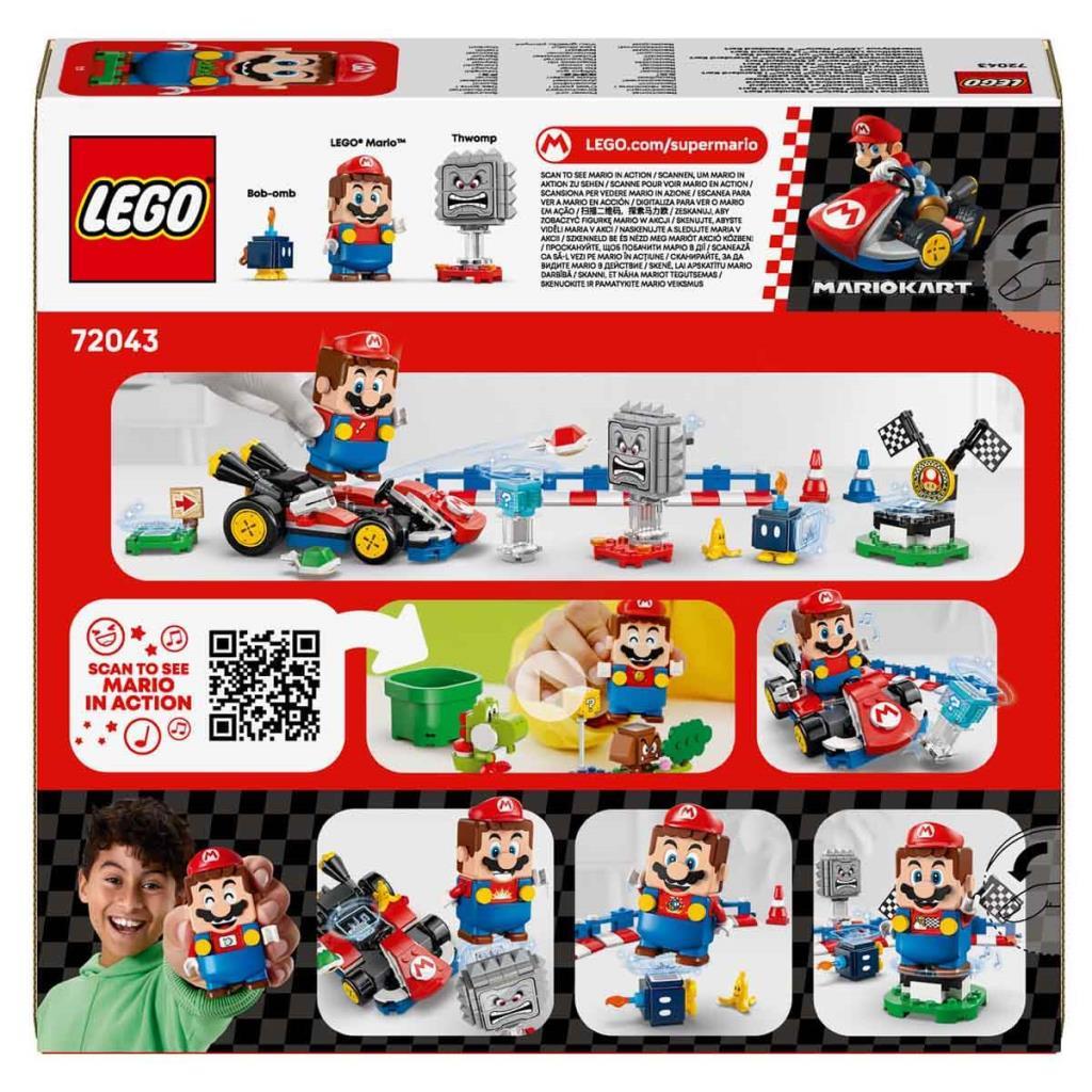 LEGO® Mario™’yu Standard Kart'ta yarıştırın, Item Box’tan dijital ödüller kazanın, Bob-omb ve Thwomp'u yenin, LEGO Mario'nun yeşil ve kırmızı LEGO plakalarına nasıl tepki verdiğine bakın ve daha fazlasını yapın.