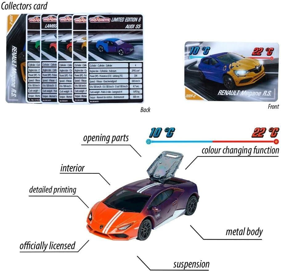 Majorette’den şimdi de harika renk değiştiren model arabalar. 6 Majorette model arabanın her biri, parlak renkleri ile özel bir sanatın parçasıdır. Serbest tekerlekli, süspansiyonlu ve açılır parçalara sahip Die-Cast ( Metal ) olarak üretilmişlerdir.