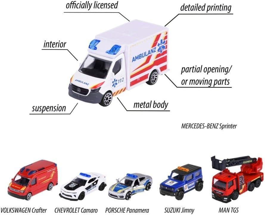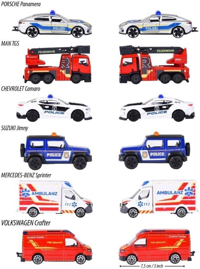• Son derece ayrıntılı – İçerir: Mercedes-Benz ve Porsche gibi markalar tarafından resmi olarak lisanslanmış, orijinal baskıya sahip Alman polis arabaları, itfaiye araçları ve ambulanslar.