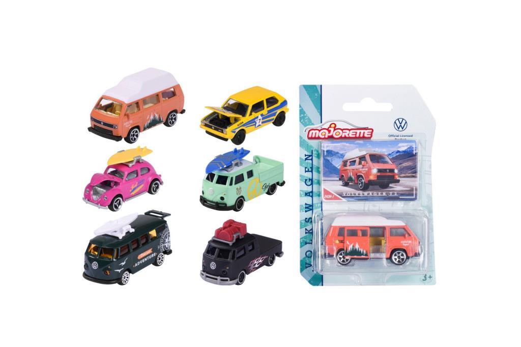 1 rastgele seçilmiş araba : Farklı araç modelinden biri çıkmaktadır ve seçim rastgeledir. 6 modelin her biri Volkswagen tarafından resmi olarak lisanslanmıştır. Serideki arabalar; Volkswagen Beetle, Volkswagen Golf MK1, Volkswagen T1 ve Volkswagen T3 gibi VW. Bireysel donanımlı - Oyuncak arabalar (her biri yaklaşık 7,5 cm ve Ölçek: 1:64 ) die-cast ( metal ) bir gövdeye, serbest tekerleğe, süspansiyona ve bazı hareketli parçalara sahiptir. Ayrıca koleksiyoncu kartı ile araba modelinize uygun bir koleksiyoncu kartı da paket içine eklenmiştir. 3 yaşından küçük çocuklar için uygun değildir
