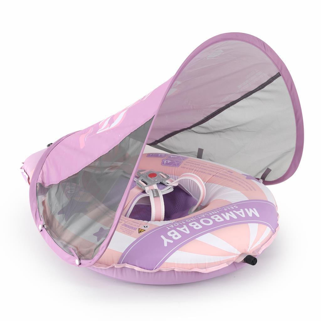 Mambobaby Hot Air Balloon Yüzme Simidi - Pembe, Emniyetli, Gölgelikli ve Ayak Destekli