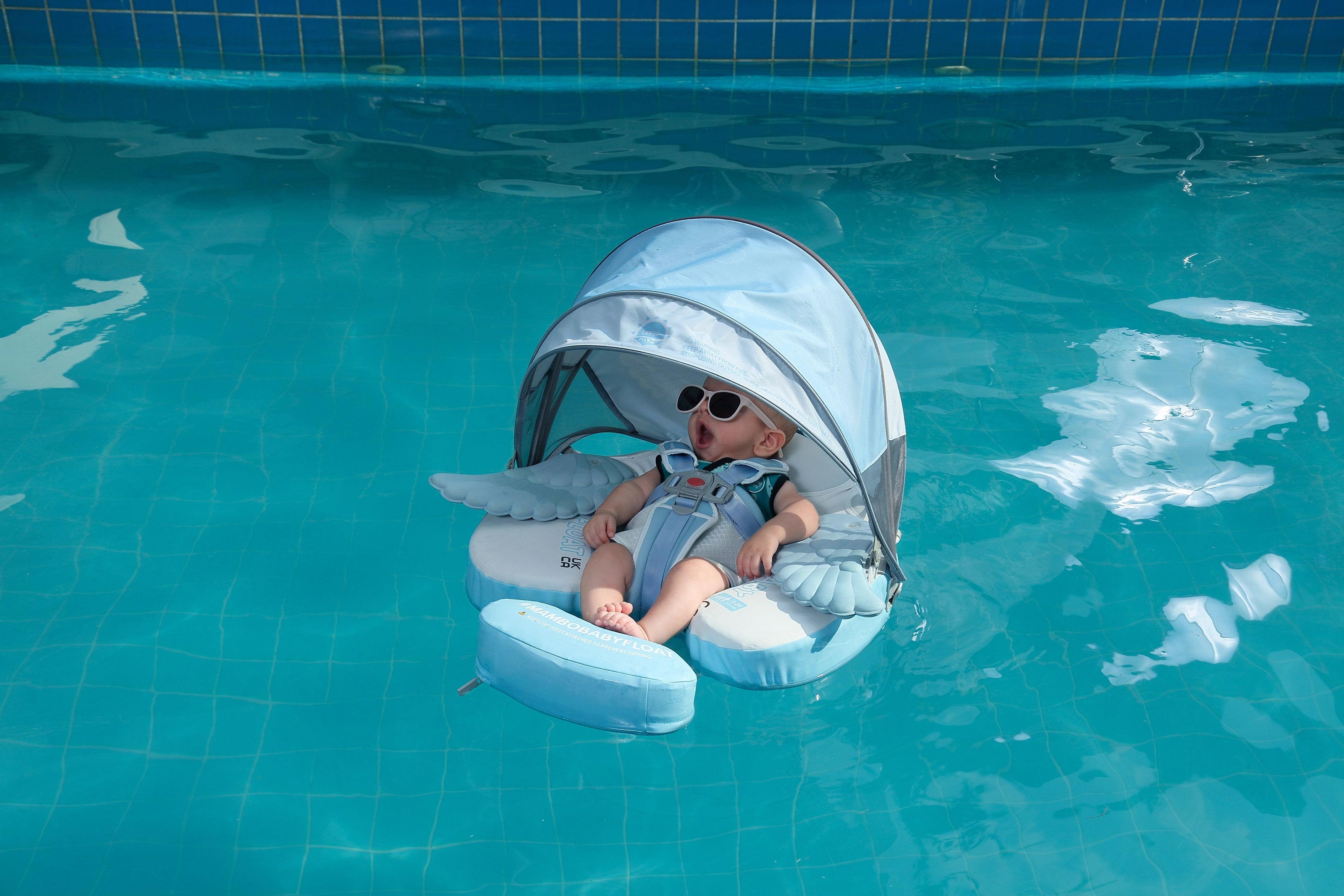 Mambobaby Yüzme Simidi - Blue Angel, Emniyetli, Gölgelikli ve Ayak Destekli