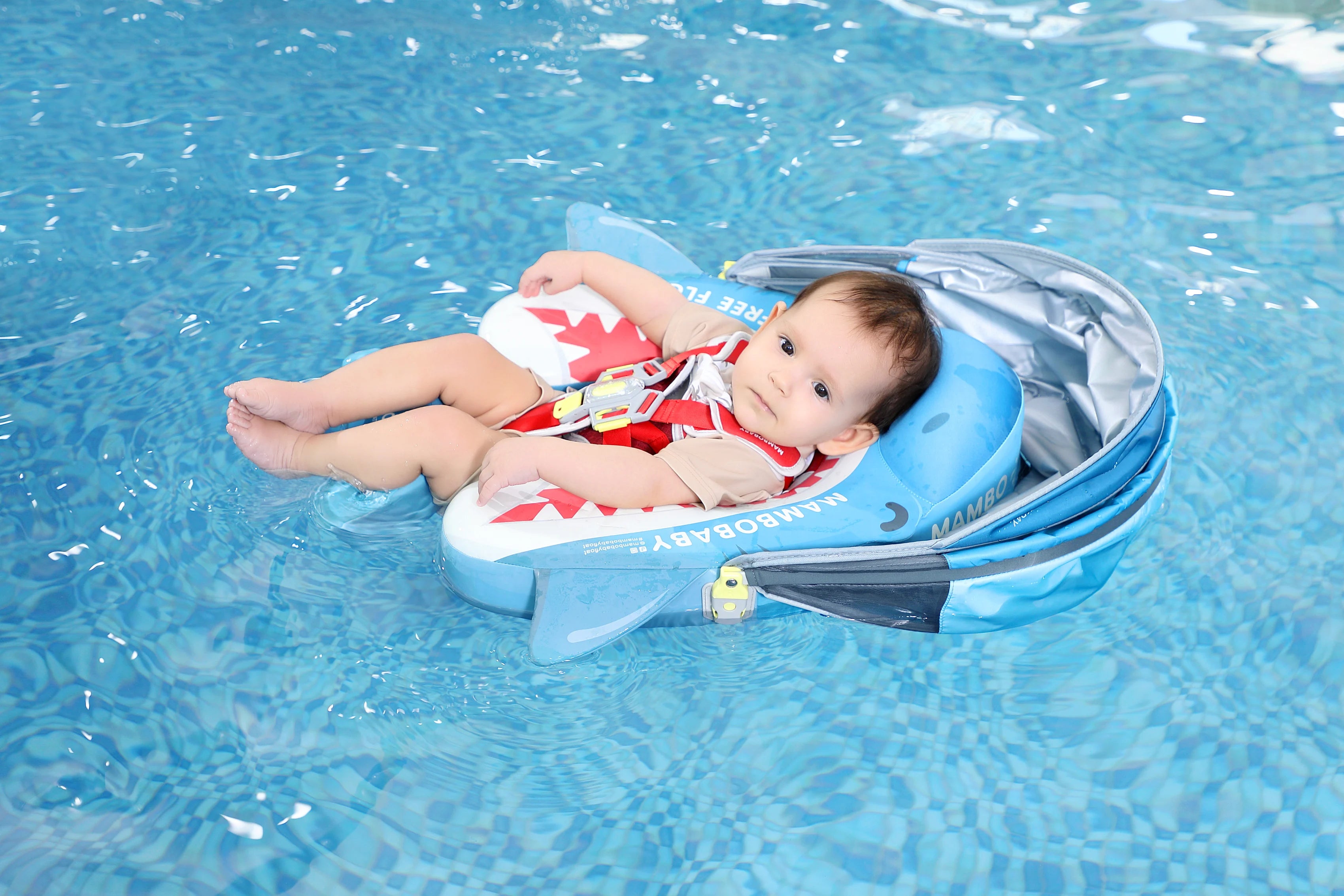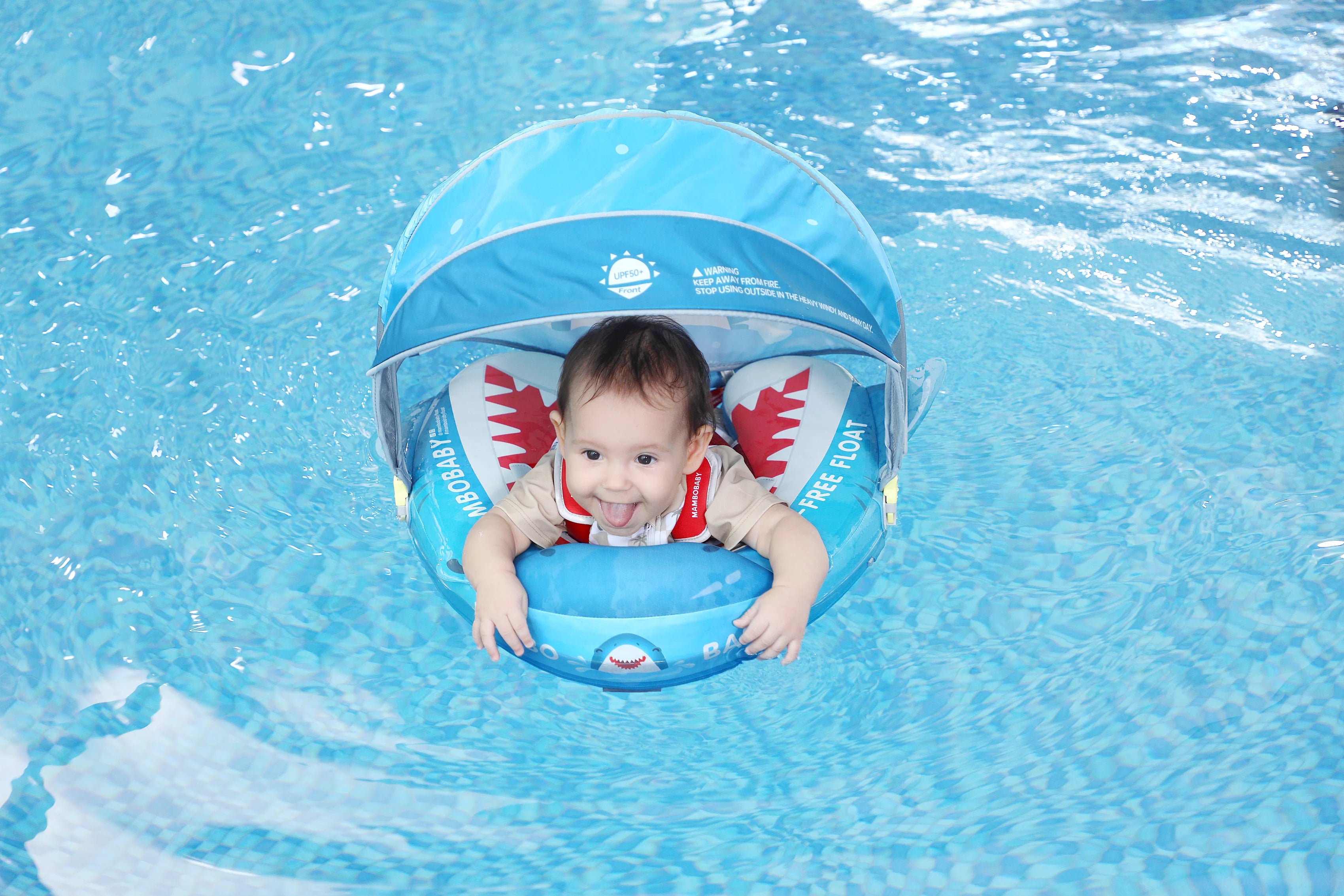 Mambobaby Yüzme Simidi - Köpekbalığı, Emniyetli, Gölgelikli ve Ayak Destekli