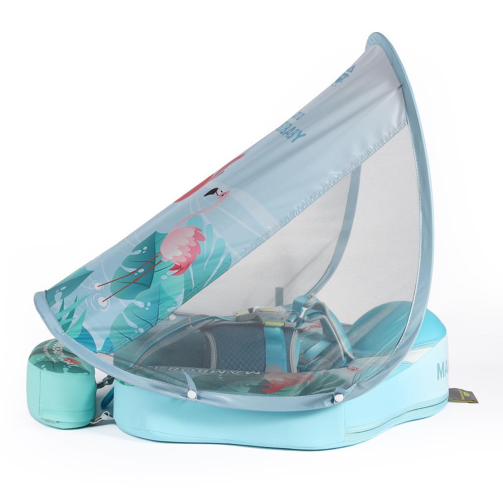 Mambobaby Yüzme Simidi - Mavi Flamingo, Emniyetli, Gölgelikli ve Ayak Destekli