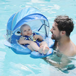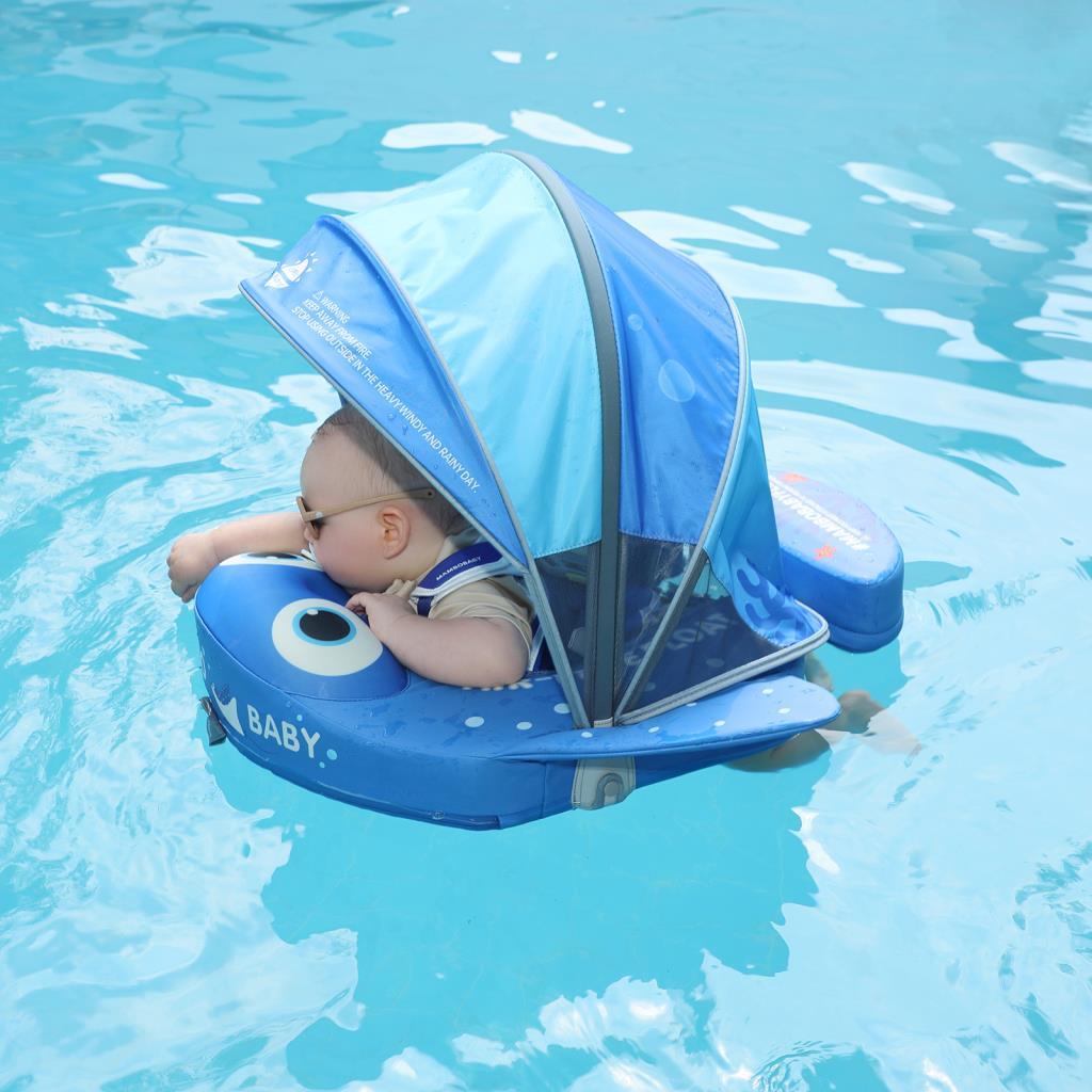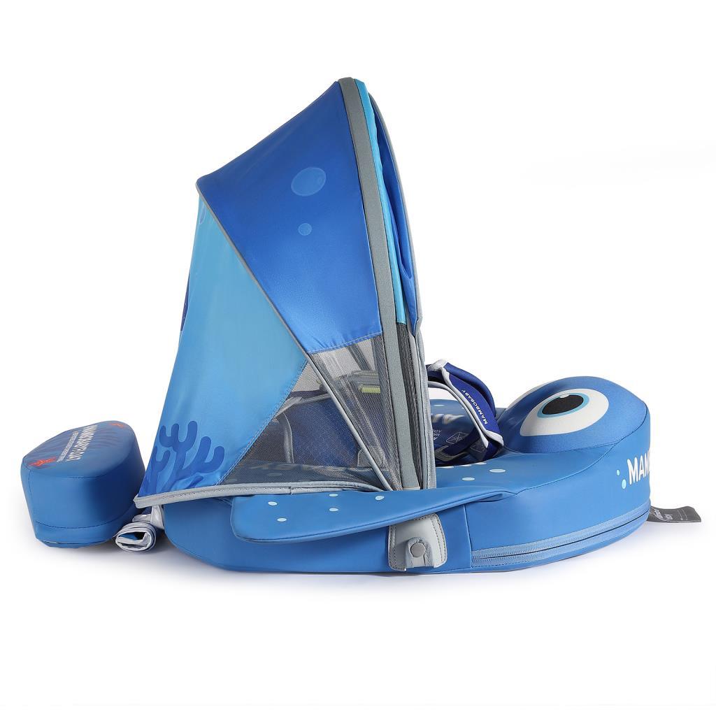 Mambobaby Yüzme Simidi - Mavi Vatoz, Emniyetli, Gölgelikli ve Ayak Destekli