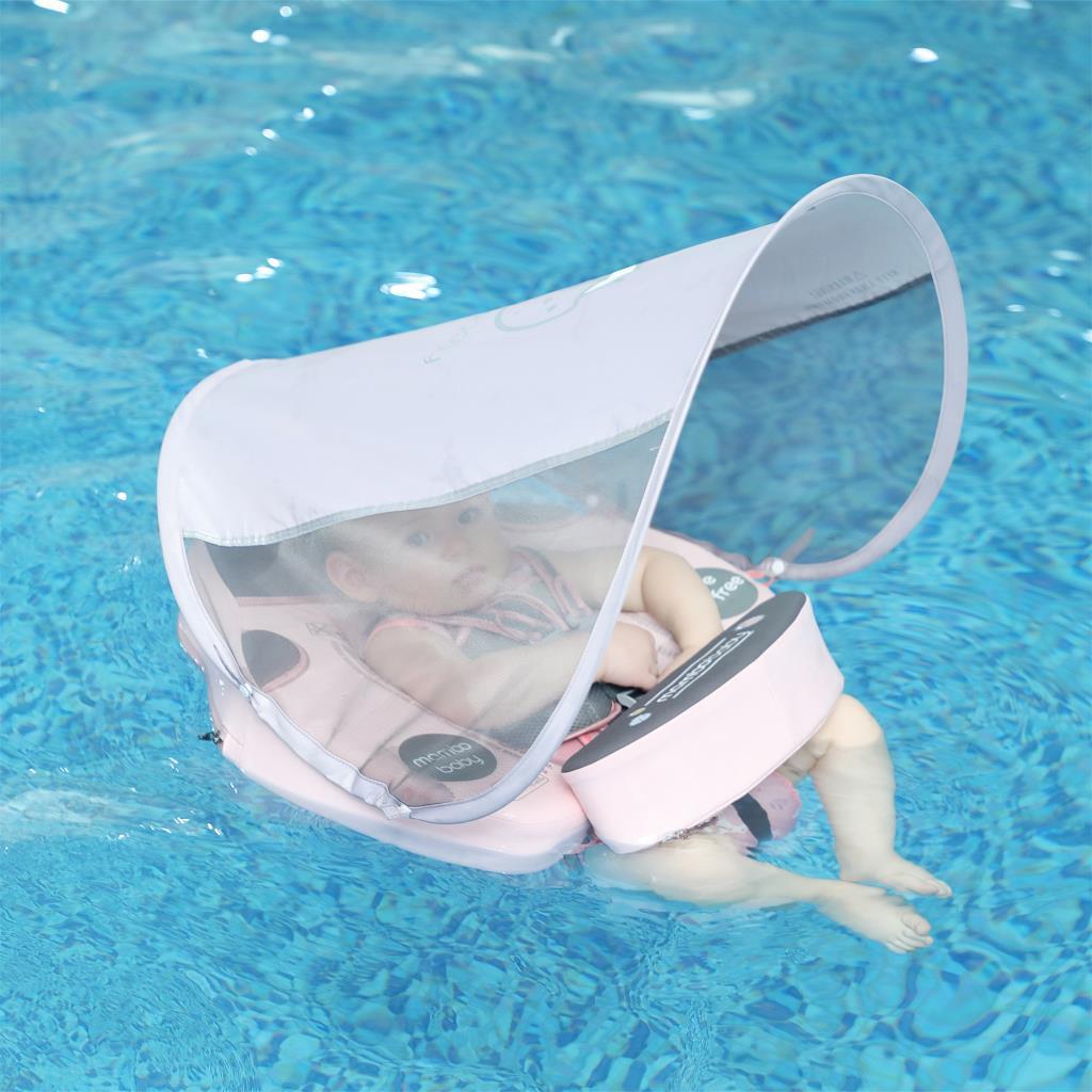 Mambobaby Yüzme Simidi - Pembe Uğur Böceği, Emniyetli, Gölgelikli ve Ayak Destekli
