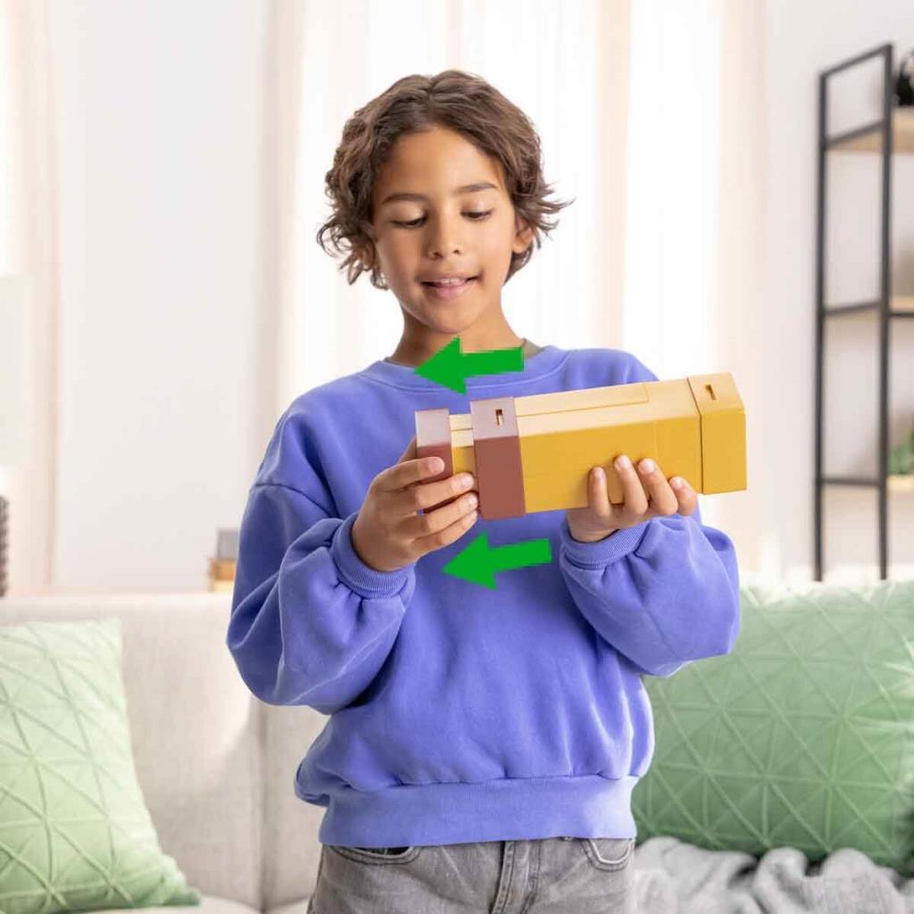 Kullanılacağı zaman dürbünü çekerek boyunu uzatabilir ve uzunluğu yaklaşık 31 cm’e ulaşan dürbünden bakarak kendini video oyunundaymış gibi hissedebileceksin. Minecraft dünyasına hoş geldin!