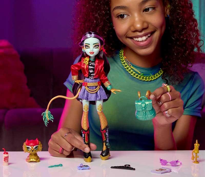 Monster High Jinafire Long bebeği, hava güçlerine sahip tatlı, şık ve fırtınalı bir ejderhadır! Ürkütücü ve sevimli bir evcil hayvan ve birçok eğlenceli aksesuarla birlikte gelir.