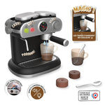 Gerçek bir kahve makinesi gibi çalışan bu eğlenceli oyuncak, çocuklara birebir kahve hazırlama deneyimi sunar. Düğmeye basın, birkaç saniye bekleyin ve sihrin başlamasına izin verin! Hazneye çok soğuk su eklenir, su kapsülden geçerken fincanda kahve belirmeye başlar. Isıya duyarlı özel malzeme sayesinde kahvenin “oluştuğunu” görmek çocuklar için tam anlamıyla büyüleyici bir deneyimdir.