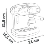 Kahve makinesinin boyutları (UxGxY): 16,5 x 21 x 21,5 cm.