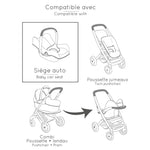 Bebek arabası şasisine (dahil değildir) takılabilir.