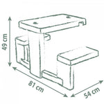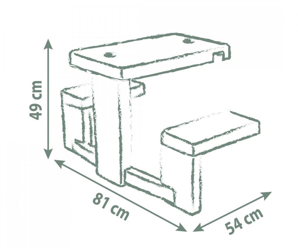 Smoby oyun evleri için en az %50 geri dönüştürülmüş plastikten yapılmış şık piknik masası! Böylece minikleriniz evde sadece eğlenip oyun oynamakla kalmaz, aynı zamanda kendileri ve tüm arkadaşları için harika bir oturma alanı da oluşturur. Piknik masası, çeşitli Smoby oyun evleriyle uyumludur. Uyumluluk tablosu, hangi setin hangi oyun evi modeli için uygun olduğunu gösterir.