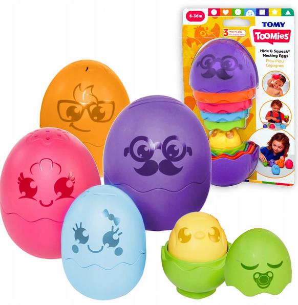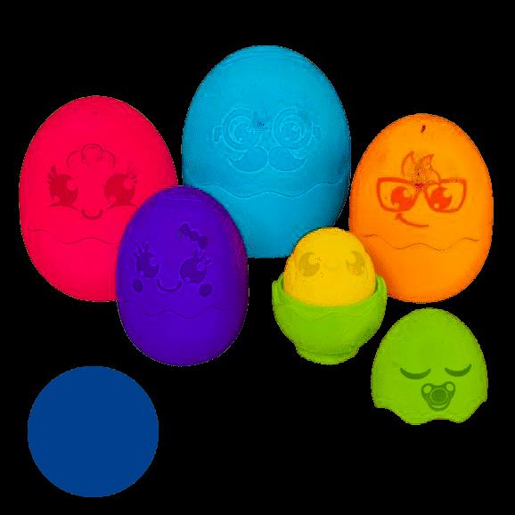 Matryoshka yumurtası, farklı boyutlarda 5 açılan yumurtaya dönüşen eğlenceli, renkli bir yumurtadır. Sıradışı yumurta şekilleri ve güzel renkleri ile ayırt edilirler. Birini diğerine kolayca yerleştirebileceğiniz şekilde yapılmıştır; bu da onlarla oynamanın çocuğun motor becerileri üzerinde olumlu bir etkiye sahip olduğu anlamına gelir. Yumurtalar boyutlarına göre eşleşecek şekilde iç içe yerleştirilebilir. Ek olarak, her yumurtanın suyun farklı şekillerde akacağı farklı delikleri vardır, bu sayede harika birküvet oyuncağı haline gelebilirler. en küçük yumurtanın içinde basıldığında komik bir ses çıkaracak bir civciv bulunur. Çocukla birlikte büyüyen bir oyuncak.