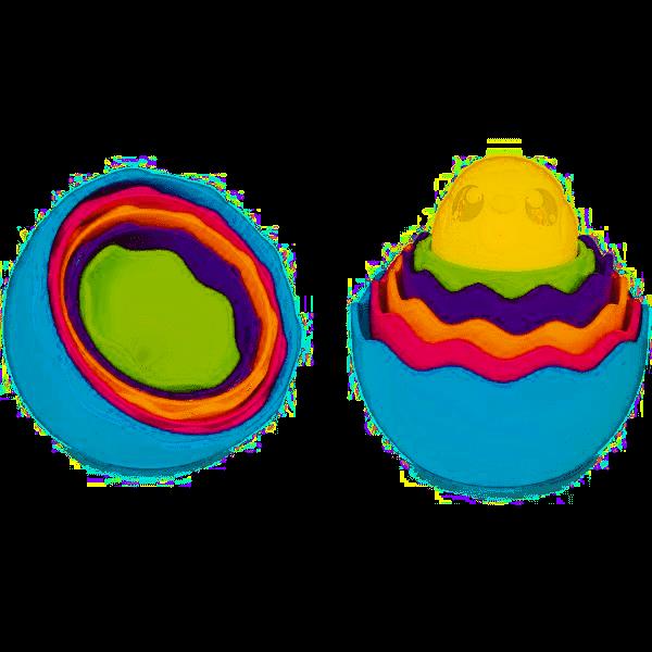 Matryoshka yumurtası, farklı boyutlarda 5 açılan yumurtaya dönüşen eğlenceli, renkli bir yumurtadır. Sıradışı yumurta şekilleri ve güzel renkleri ile ayırt edilirler. Birini diğerine kolayca yerleştirebileceğiniz şekilde yapılmıştır; bu da onlarla oynamanın çocuğun motor becerileri üzerinde olumlu bir etkiye sahip olduğu anlamına gelir. Yumurtalar boyutlarına göre eşleşecek şekilde iç içe yerleştirilebilir. Ek olarak, her yumurtanın suyun farklı şekillerde akacağı farklı delikleri vardır, bu sayede harika birküvet oyuncağı haline gelebilirler. en küçük yumurtanın içinde basıldığında komik bir ses çıkaracak bir civciv bulunur. Çocukla birlikte büyüyen bir oyuncak.